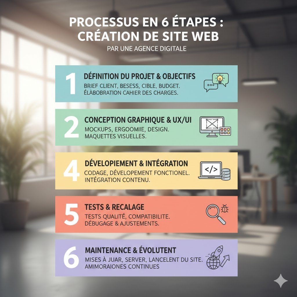 Le processus de création d’un site web suit généralement plusieurs étapes clés. Tout commence par un brief détaillé pour comprendre les besoins et objectifs du client. Ensuite vient la phase de maquette, où les designers créent les visuels du futur site.